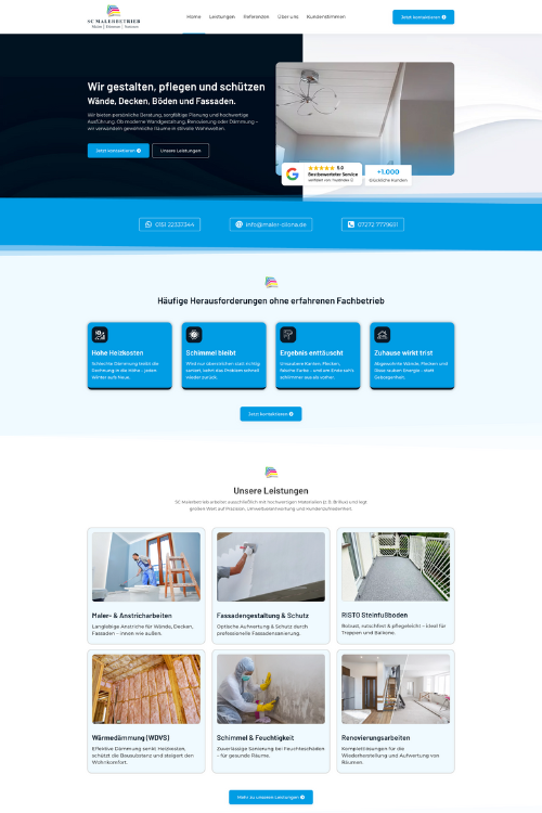 Der SC Malerbetrieb aus Bellheim ist ein wachsendes Unternehmen, das großen Wert auf Qualität und Kundenzufriedenheit legt. Ziel war es, mit einer modernen Website direkt Vertrauen aufzubauen und die Leistungen klar und übersichtlich darzustellen.